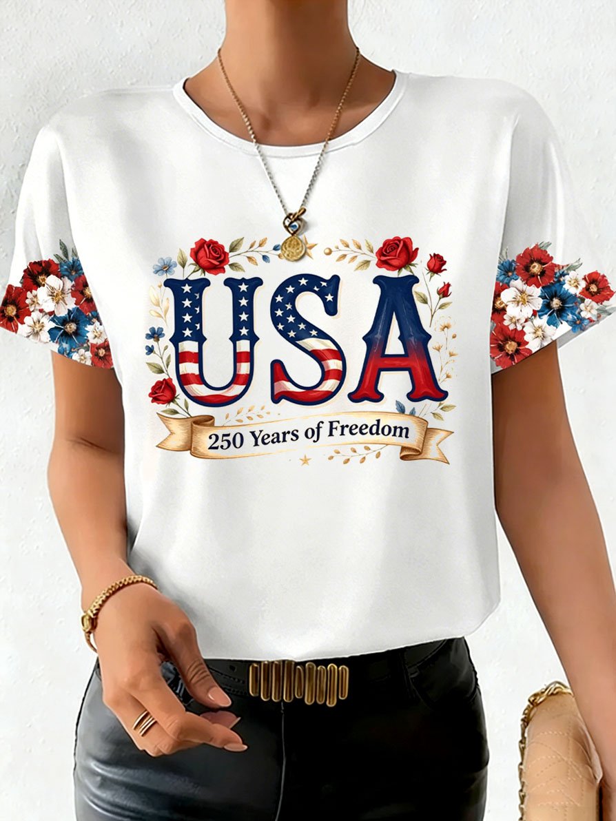 Women's 250th America Anniversary Casual Printed Crew Neck T-Shirt$26.98 USD$38.62 USD
