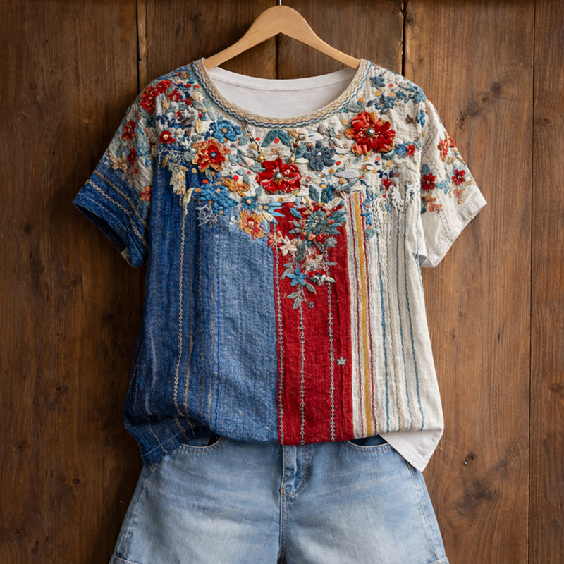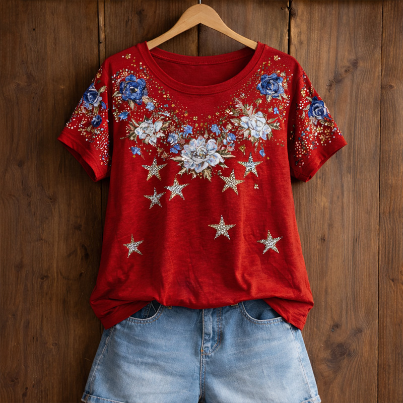 Women's American Patchwork Pattern T-Shirt$24.99 USD$49.98 USD