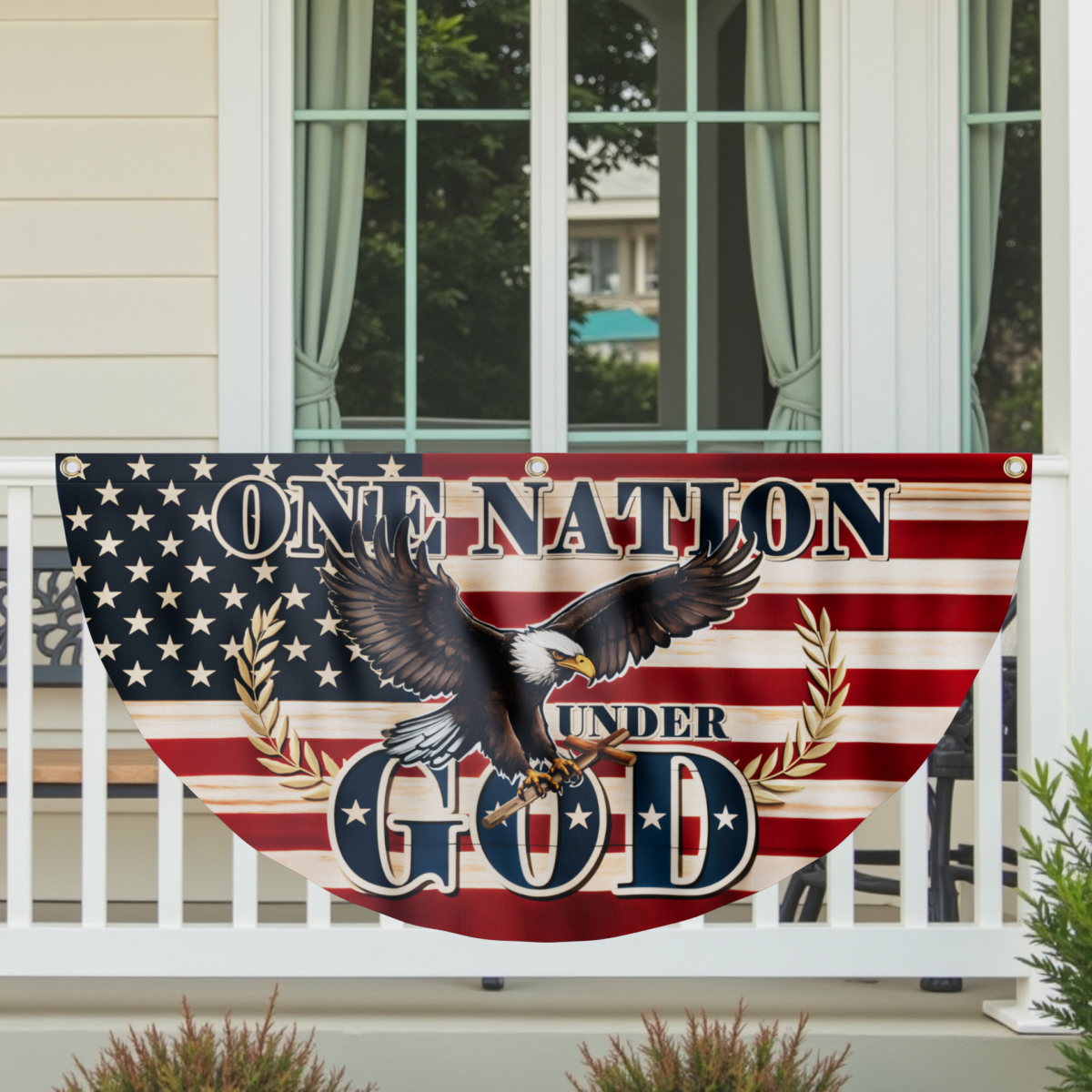 Soaring Patriotic Eagle Fan Flag - One Nation Under God Double-Sided Printed Flag CULTQ9FD